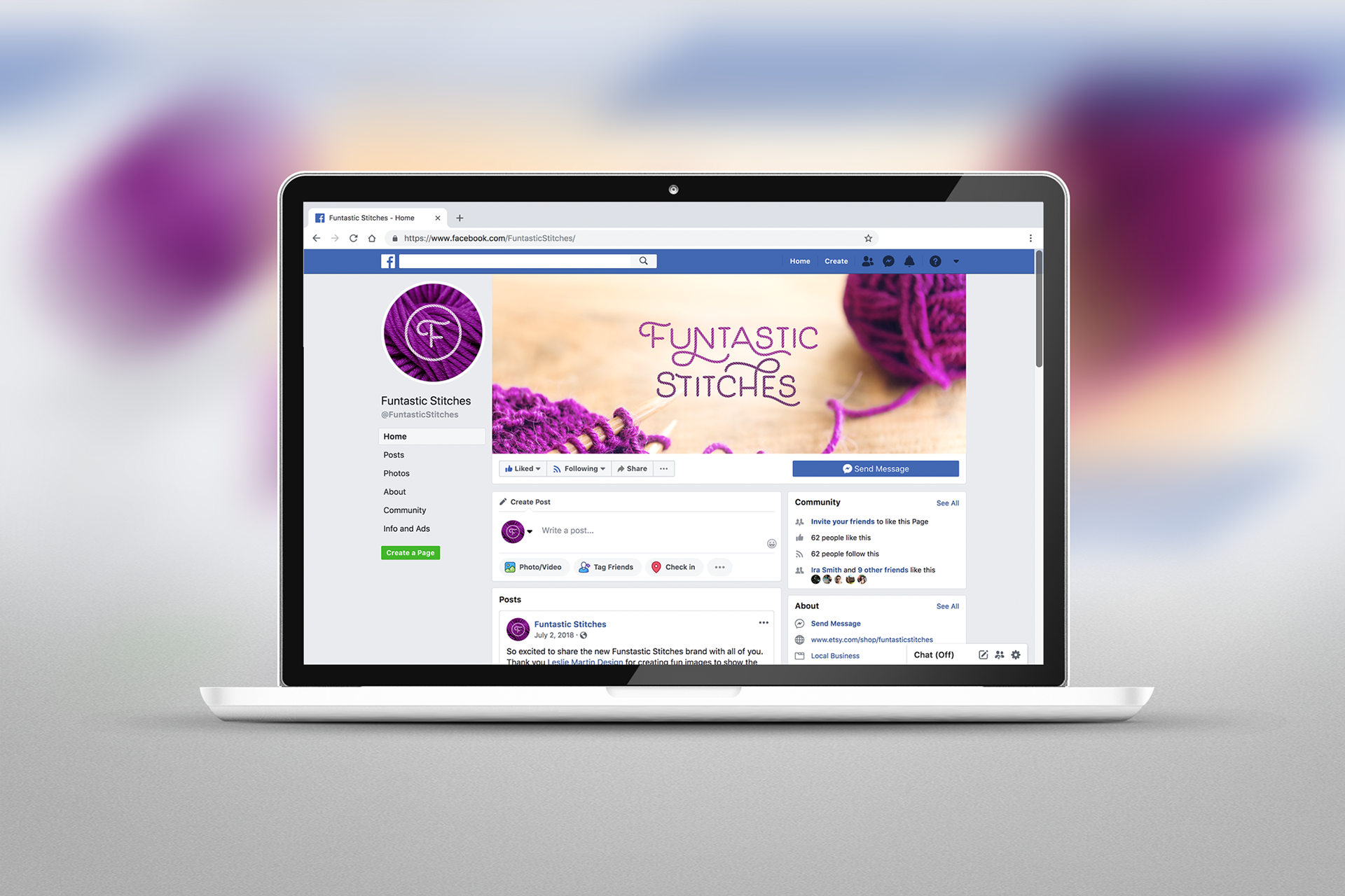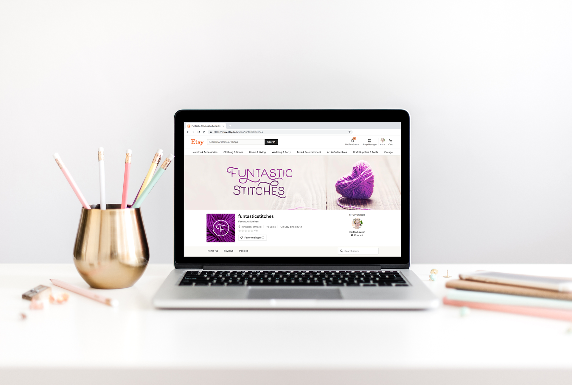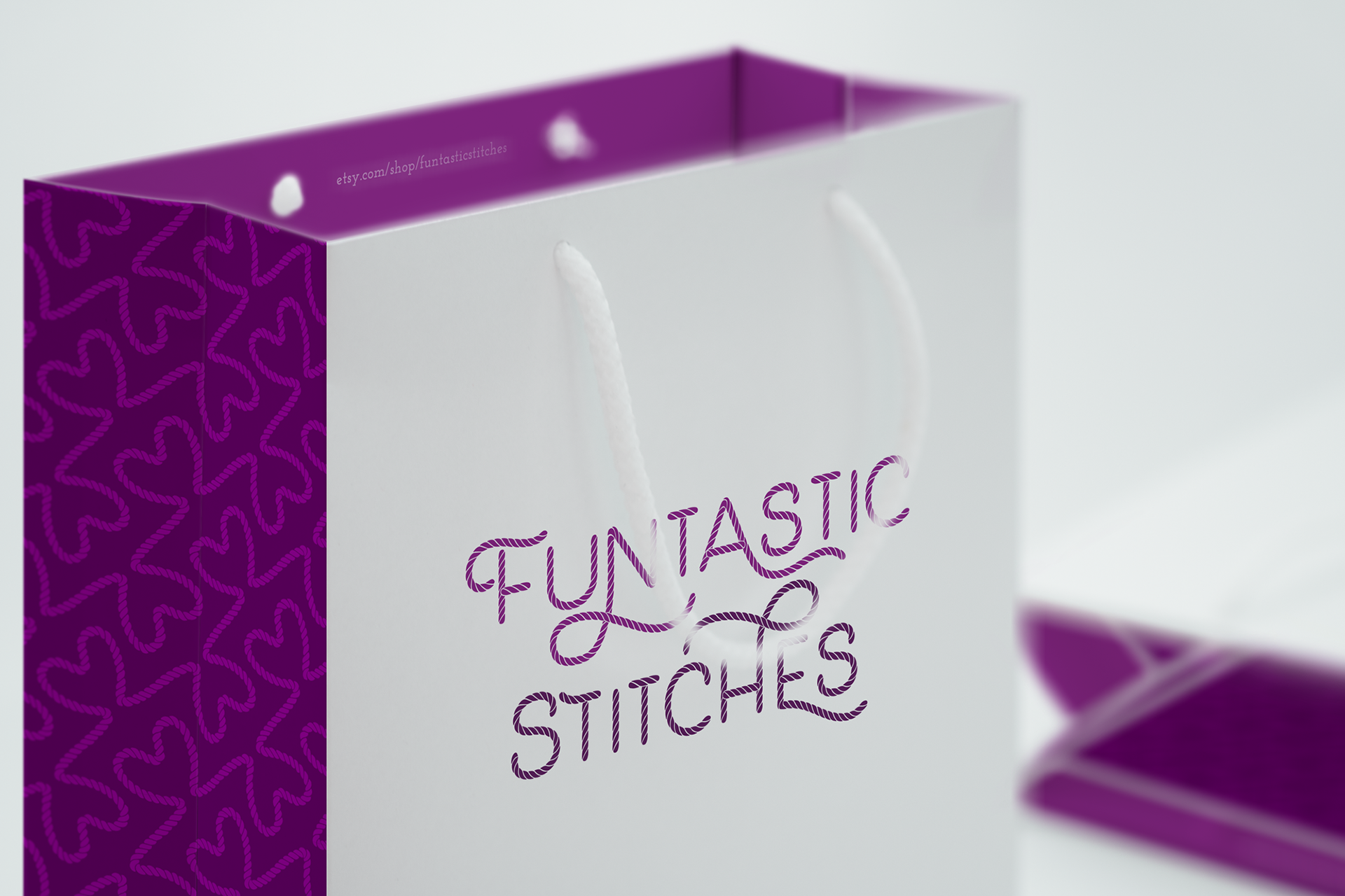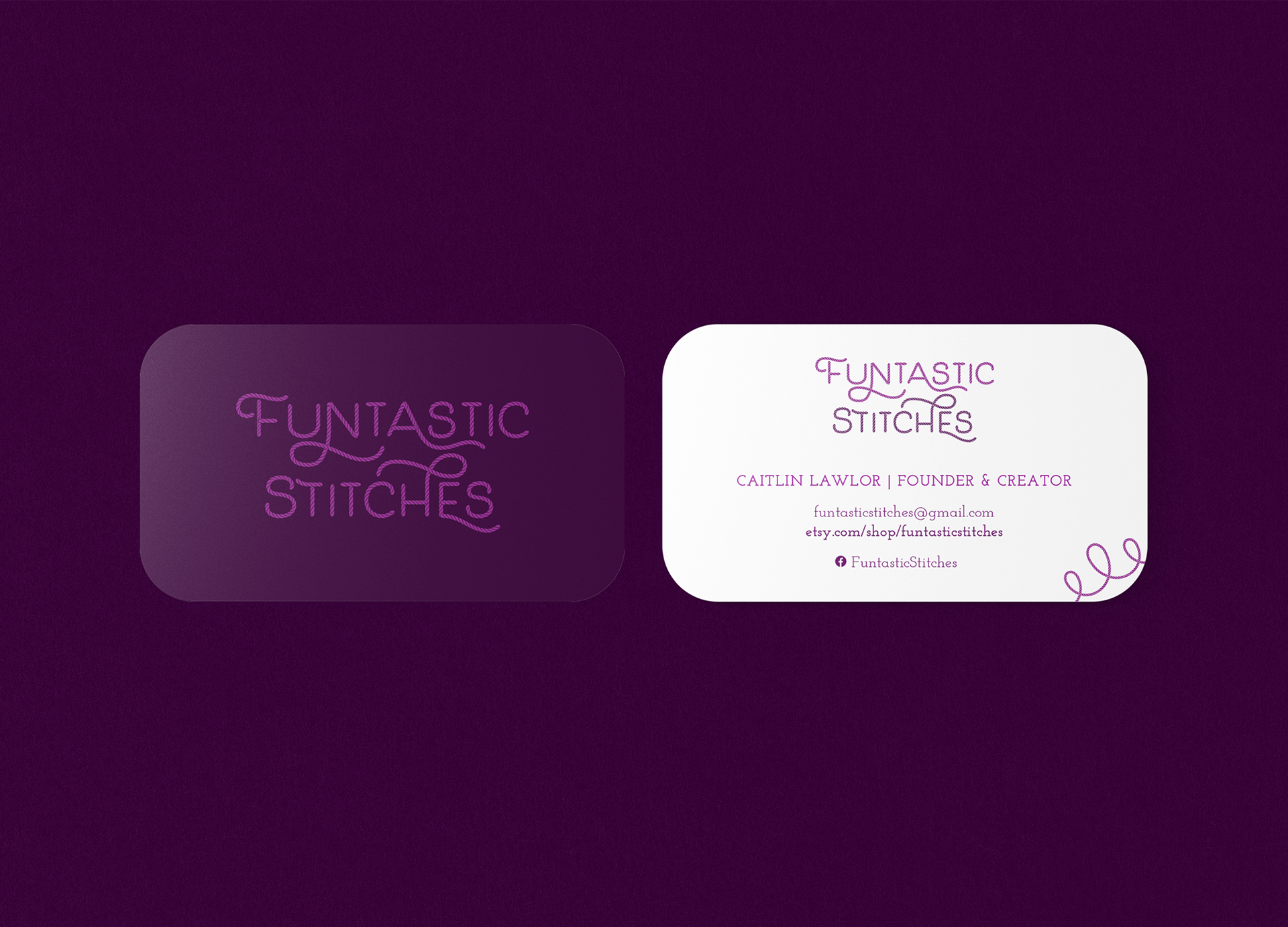 Branding and identity design for Funtastic Stitches, a playful, handmade brand that sells knitted and sewn goods for children on Etsy.